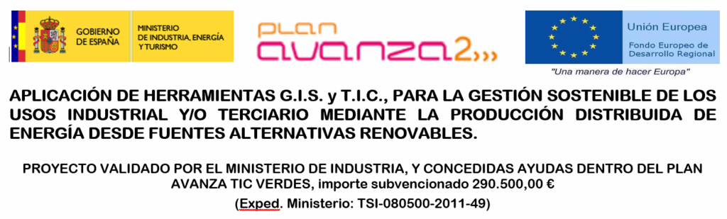 Desarrollo de Herramientas Especializadas para la GESTIÓN Y DESARROLLO DE ÁREAS INDUSTRIALES Y/O DE USO COMERCIAL-TERCIARIO, así como Desarrollo de Herramientas para la Gestión Sostenible de los Usos Industriales y/o Comercial-Terciario mediante la Producción de ENERGÍAS RENOVABLES. Herramientas de Software desarrolladas sobre Sistemas de Información Geográfica (G.I.S.) y Bases de Datos. Ambos Proyectos validados por el Ministerio de Industria del Gobierno de España.